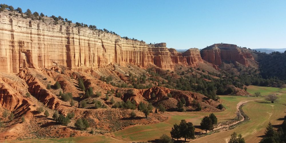 Estos escarpados verticales de colores anaranjados se ubican a solo dos kilómetros de Teruel. Son conocidos como "El Gran Cañón de Teruel" porque recuerda a los escenarios desérticos típicos de las películas del oeste.